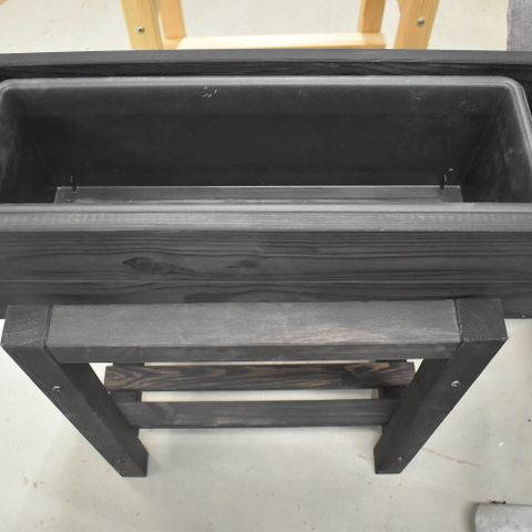 Kyllästetystä puusta valmistettu kukkalaatikko.