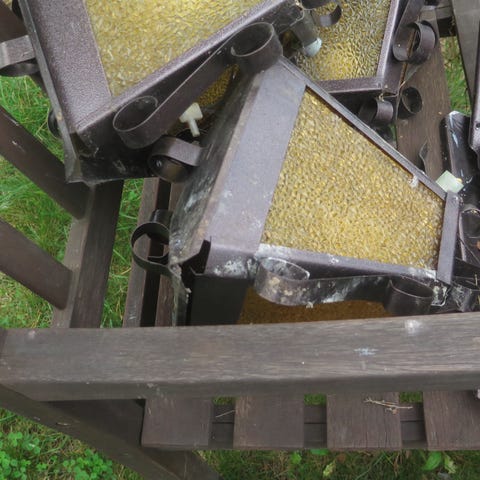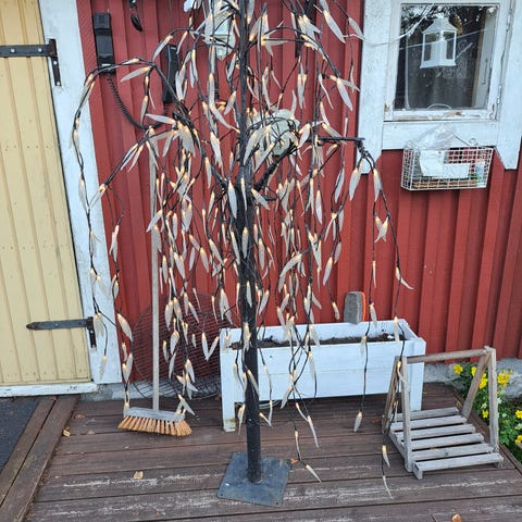 Puuosaston kierrätysikkunoista valmistama lyhty.
