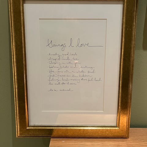 Serlachius-museon Banks-näyttelystä ostettu juliste, valkoiset kehykset