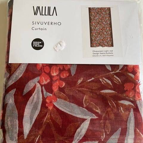 Uudet Vallilaa Pihasyreeni Light punaiset verhot/ valoverhot. Verhon koko L140 cm x K240 cm. Kangas 100% polyesteriä.