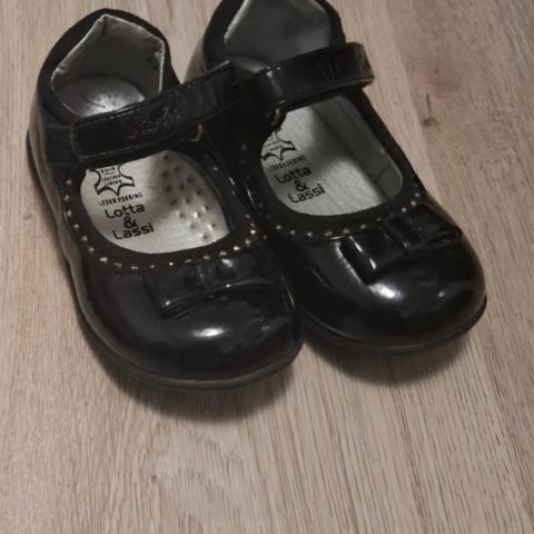 Uudenveroset valkoiset, kimaltavat juhlakengät tarrakiinnityksillä. Kokomerkintä 23, mutta vastaa enemmän kokoa 21-22. Pohjan mitta 15cm. Vain nouto.