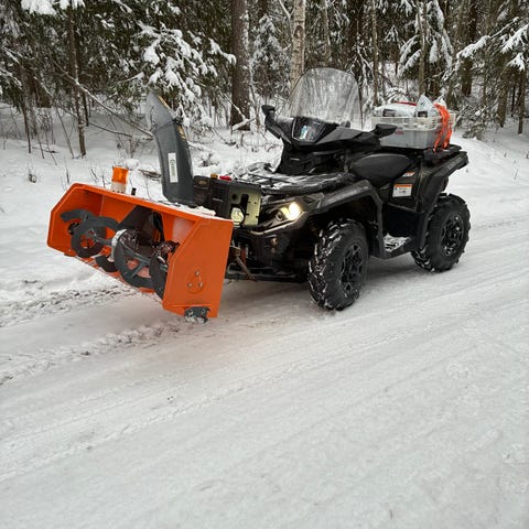 Lumilingon korkeutta säädettävissä mönkijän vinssillä