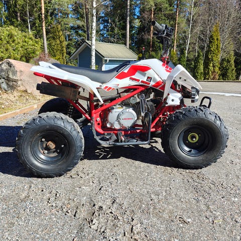 Mönkijä toimitetaan tehdaspaketissa, jolloin mönkijään täytyy itse kiinnittää renkaat, ohjaustanko ja telineet. Voit myös tilata verkkokaupastamme helposti kasauspalvelun, jolloin mönkijä toimitetaan ajovalmiina.
