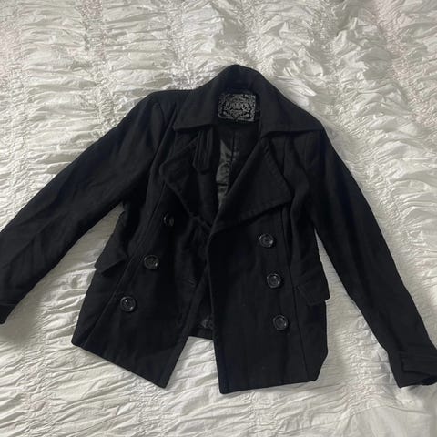 Sokokselta ostettu musta Milo villakangastakki koko 34 mutta reilumpaa mitoitusta eli vastaa enemmän kokoa 36. Ei paljoa käytössä ollut, todella hyväkuntoinen 🤍