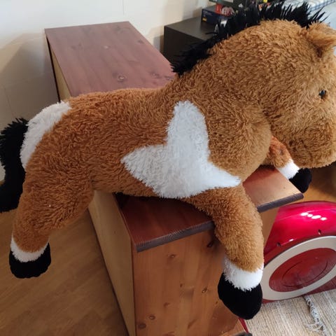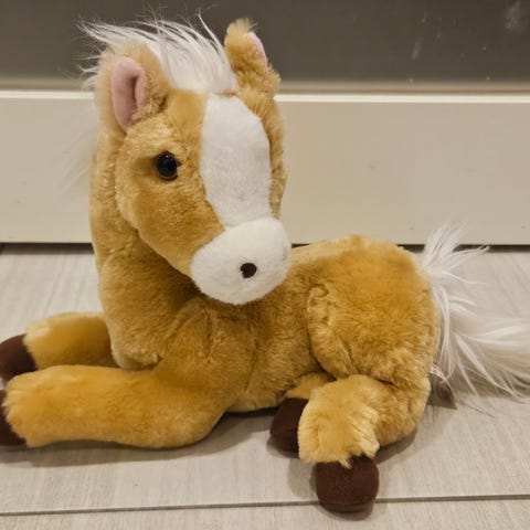 Myydään kuvan pehmolelu hevonen. Korkeus n. 35 cm. Ollut vain koristeena, ei ole leikitty. Meillä ei polteta eikä meillä ole lemmikkejä. Postitus ostajan kustannuksella 7,90.