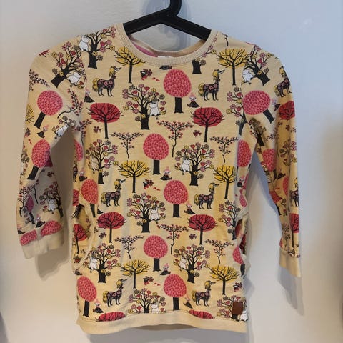 Erittäin siisti ja hyväkuntoinen Muumi-aiheinen pitkähihainen collegepaita, koko 116. Paita on valmistettu paksummasta materiaalista, mikä tekee siitä täydellisen viileämmille päiville. Suloinen ja värikäs kuosi, joka varmasti ilahduttaa pieniä Muumi-faneja.