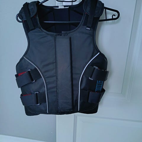 Myydään kuvan säädettävä Hööks CRW turvaliivi ratsastajalle. Koko lasten XL (Child X large). Rinnan ympärys 72-80 cm. Takaosan panssarin korkeus 47,5 cm. Liivissä on vetoketju kiinnitys ja kiristys tapahtuu tarroilla. Tarroissa on punaiset merkit, jotka jäädessään näkyviin kertoo että liivi on käynyt pieneksi. Oikean puolen ylemmän tarranauhan pää on kiinnitetty suutarila uudestaan (viimeinen kuva). Päällinen irroitettavissa ja pestävissä. Liivi on Level 3 BETA 2009 standardin mukainen (EN13158:2009 LEVEL 3). Liivi on ollut käytössä yhdellä tytöllä. Meillä ei polteta. Postitus ostajan kustannuksella.
