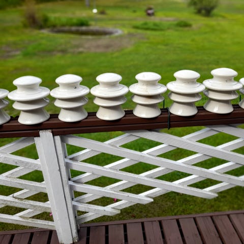 Vanha, joko sähkötolpassa tai talon ulkoseinässä ollut posliininen eristin, väri valkea. Korkeus n. 8 cm ja lierin halkaisija myös.n. 8 cm. Eristimessä leima ARABIA, ks. viimeinen kuva. Esine on täysin virheetön ja ehyt, ei lohkeamia/ halkeamia.