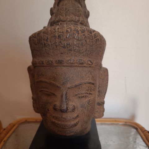 Naurava Buddha, vanhaan puuhun veistetty upea uniikki patsas.