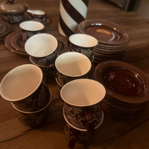 Myyn kuvassa näkyvät Arabian Kastanja sarjan kupit ja tassit. Kuppeja on 6kpl, tasseja on 5kpl. Hyvässä kunnossa. Lähialueelta mahdollisuus noutaa sovittaessa.