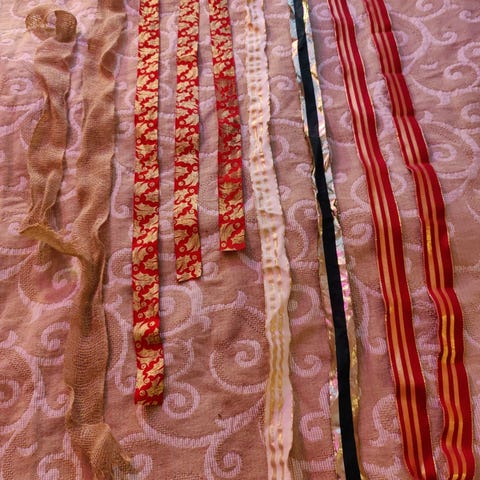 4cm x 45 cm 4kpl. Puna-valkoiset tähdet nauhassa. Kauniit. Käsityötä. Kpl.hinta 4e