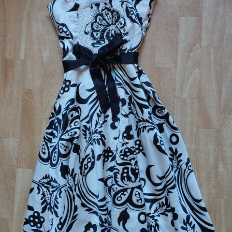 vilan mekko.kaunis kuosi.materiaali on polyestri 100%käyttämätön mekko.melkein kuin olisi L-koko.isokokoinen mekko