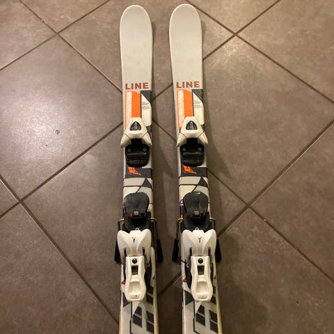 Myydään Line Tom Wallisch Shorty Twintip lasten (noin 7-8v) parkkisukset + Marker siteet+Salomon monot koko 21/21.5.