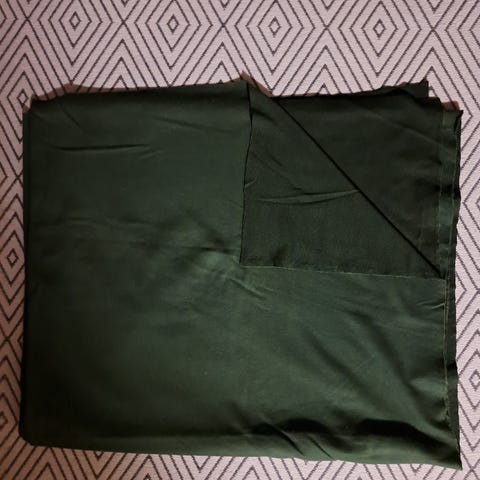 Havunvihreä , laadukas ja pehmeä trikoo. Joustaa , tässä on hiukan elastaania mukana. Leveys 155cm ja pituutta löytyy 800cm. 12e / metri. Saa ostaa sellasen pätkän kun haluaa. Tai koko 8 metriä hintaan 85e Ja väri tasainen tummanvihreä/ havunvihreä. Postimaksu 2.75-9.90e