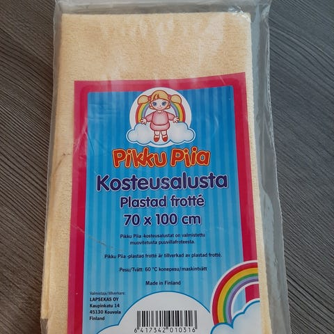 Kosteusalusta suojaa lapsen sängyn patjaa pissivahingoilta ja pulautuksilta. Soveltuu myös moniin muihin käyttötarkoituksiin kuten esim. laudeliinaksi tai lemmikkien ruokailupaikan lattiasuojaksi.