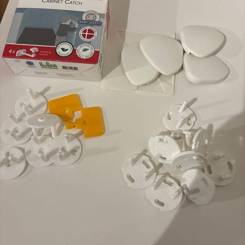 Muistutus: Tämän paketin tuotteet ovat vain esteitä. Ne eivät korvaa vastuullisen aikuisen valvontaa. Lopeta tuotteiden käyttö, kun lapsesi on tarpeeksi vanha käyttämään niitä tai irrottamaan ne itse. Varoitus: Myrkylliset aineet, lääkkeet, terävät esineet ja muut mahdollisesti vaaralliset esineet tulee aina pitää lasten ulottumattomissa.