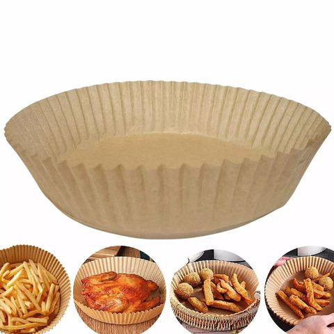 Air Fryer-laitteissa on valmistajakohtaisia eroavaisuuksia. Tämä suojapaperi sopii useisiin markkinoilta löytyviin 3-6 litran ilmakypsentimiin. Tutustuthan oman ilmakypsentimesi ohjeisiin ennen käyttöönottamista. Mallikohtaisista eroista johtuen voi paperin käyttäminen ilmakypsentimessä vähentää ilmavirtauksen voimakkuutta, ja näinollen myös heikentää kypsennystehoa. Mikäli ilmavirtaus tapahtuu voimakkaasti astian pohjalla olevien reikien kautta, huolehdithan että paperi ei pääse osumaan kypsennysvaiheessa lämpövastuksiin. Asettele kypsennettävä ruoka tasaisesti suojapaperin päälle.