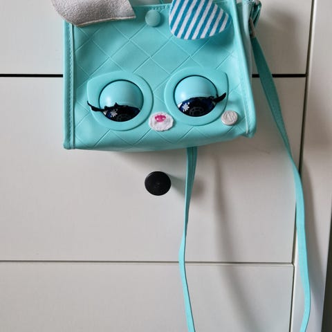 Purse Pets laukku koira Vipooch Herätä tyylisi eloon Purse Pets Tikatuilla -laukuilla. Nämä interaktiiviset laukut ovat täynnä persoonallista asennetta. Ne reagoivat kosketukseen, todella räpäyttävät ripsiään ja niillä on yli 30 uutta ääntä ja reaktiota. VIPoochissa on sinivihreä kudottu keinonahkakangas, raidalliset metallihopeiset pennunkorvat, suuret säihkyvät silmät ja neppari. Kanna kaksoishihnalla VIPoochia kahvojen kanssa tai pidennä pidempää hihnaa 101,5 cm:iin käytettäväksi olkalaukkuna tai crossbody-laukkuna. Tarvitsee 3 x AAA-paristoa, jotka myydään erikseen.Ikäsuositus: 5+ vuotta.