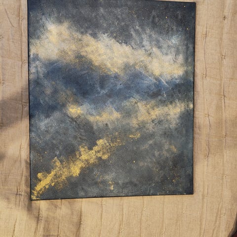 “Nukkekoti” 40x60 cm akryylimaalaus, joka on upean yksityiskohtainen kuvaus nukketalosta. Siinä on myös surrealismin piirteitä.