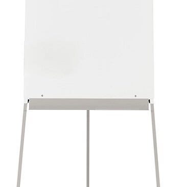 Magneettinen valkotaulupinta. Säädettävät paperipidikkeet. Täysmittainen kynäkouru pitää tussit tallessa.