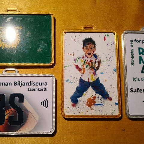 Valikoimastamme löydät myös muovitaskut henkilökorteille, henkilökorttikotelot, kaulanauhat ja ketjut henkilökorttien kiinnitykseen, muovilenkit ja remmit henkilökorteille ja nimikorttikiinnikkeet.