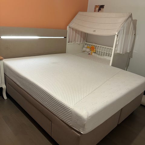 Myydään erittäin hyväkuntoinen myymälämalli edullisesti. Vuoteessa irrotettava tarrakiinnitteinen helmalakana. Vuoteen pääty myös irtoverhoiltu. Kokonaisuuden Mitat Lsk 160*210*115cm. Suositushinta 4920eur. Tuote Myydään kokonaisuutena. Jämäkkyydet Medium ja Firm.
