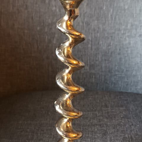 Iso siis ja painava messinkinen kynttilänjalka. Siihen sopii ns. pöytäkynttilät, suurin halkaisija niillä hiukan yli 7 cm.
