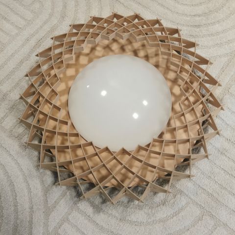 Näyttävä valaisin on valmistettu käsityönä Suomessa ohuesta koivuvanerista ja sen kokoamiseen ei ole käytetty lainkaan liimaa tai ruuveja. Valaisimen on suunnitellut suomalainen Janne Uusi-Autti.