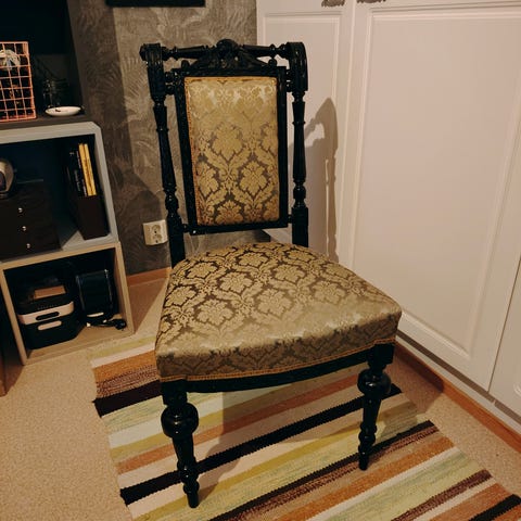 Materiaali: vaalea verhoilu/sävytetty saarni