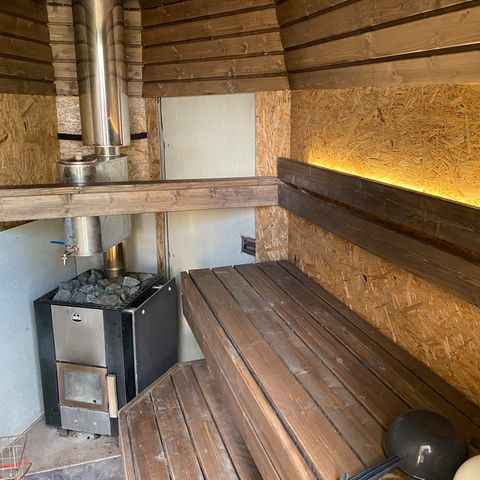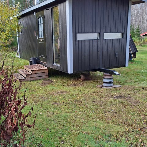 Tästä juuri valmistunut rekisterissä oleva kärry sauna maisema ikkunalla.