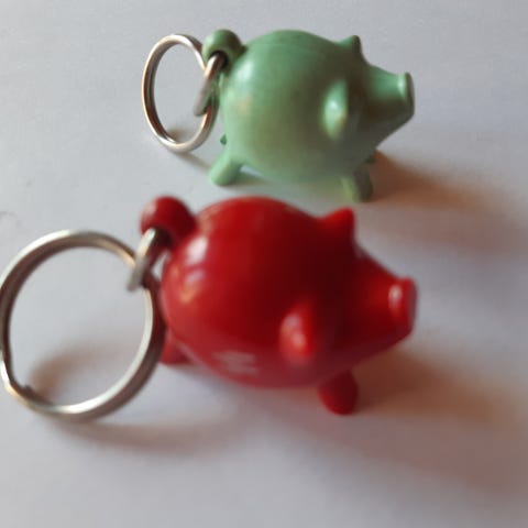 Postipankin possu-avaimenperä ja pieni nahkakukkaro