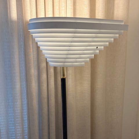 Klassikon asemaan noussut, Aallon tyyliä hyvin kuvastava valaisin on viehättänyt veistosmaisuudellaan ja käytännöllisyydellään vuosikymmenten ajan. Valo siivilöityy kauniisti varjostimien säleiköistä antaen valoa sekä ylös että alas.