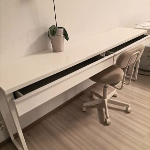 Talbot-työpöytä on tyylikäs valinta kodin työhuoneeseen, mutta vähäeleinen pöytä ei häiritse silmää makuuhuoneen tai olohuoneenkaan puolella.