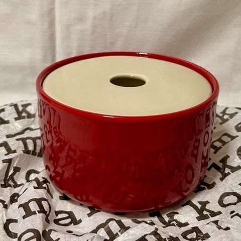 Myynnissä jo tuotannosta poistunut, Sami Ruotsalaisen suunnittelema punainen Oiva storage jar eli kannellinen purnukka koossa 0,5l. Koko 12x8cm. Materiaali kestää konepesun. Kunnossa ei huomautettavaa.