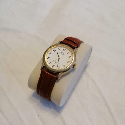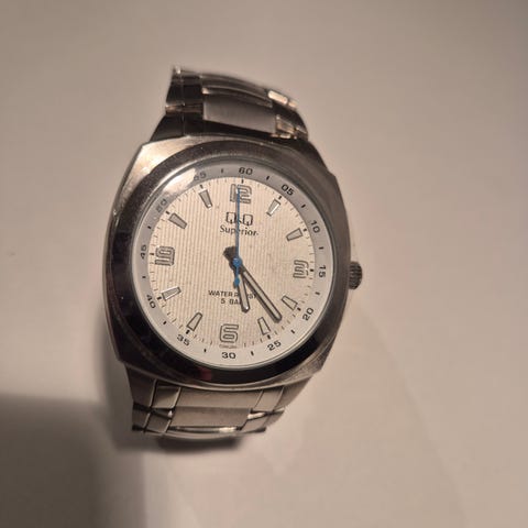 Veden kestävä Q&Q Japan rannekello teräs rungolla ja päivämäärä näyttämällä. Uusi paristo mukaan.