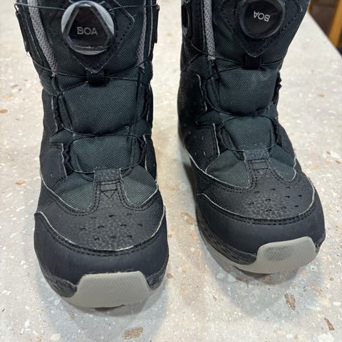Yhdellä lapsella käytössä olleet siistikuntoiset ja ehjät vikingin talvikengät.