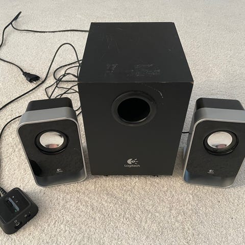 Hyväkuntoinen 2.1 kaiutinsysteemi esim tietokoneeseen.