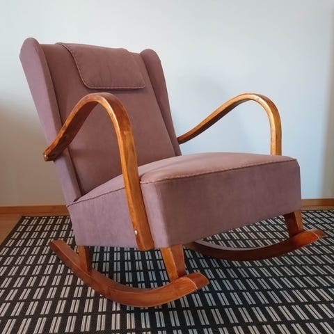 Sinulle, joka arvostat alkuperäiskuntoista 1980-luvun lepotuoli nojatuolia. Et halua kylmää nahkaverhoilua ja haluat kallistaa pääsi taaksepäin mukavaan nojaan tyhjän tilan sijaan. Siis oikein rentoutua ja nauttia olostasi. 80-luvun alun meillä uudesta ollut nojatuoli alkuperäisellä kestävällä ja helposti pestävälläkin kankaalla. Keinuu ja pyörii. Ei ole meillä ollut käytössä, koristeena vain. Postitus 45 euroa, kotiovelle 60 euroa.