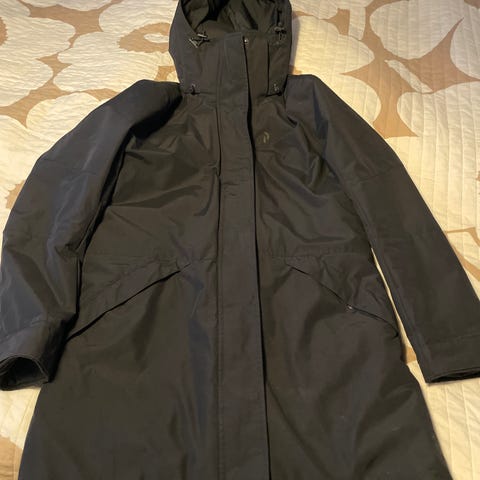 Hupussa irrotettava karvareunus. Takissa hyvät ominaisuudet, pitää tuulta ja sadetta hyvin.