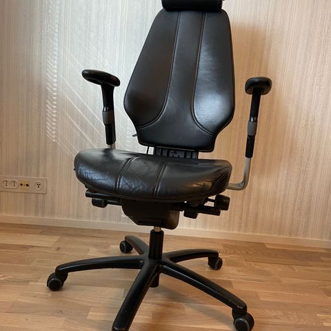 Niskatuki ja korkea selkänoja tukevat ristiselän lisäksi yläselkää. Korkeus- ja sivuttaissuunnassa säädettävät käsinojat vakiona.