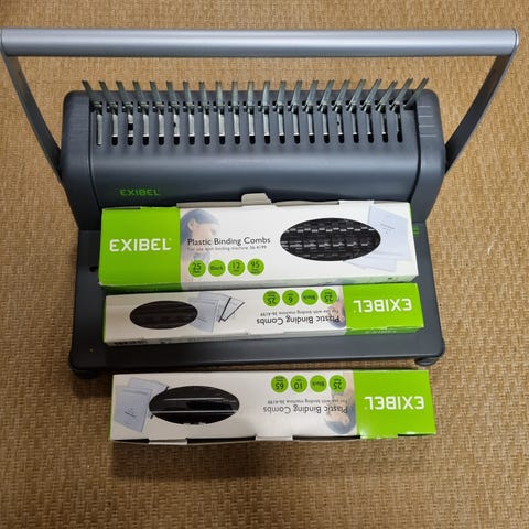 Laitteen mukana toimitamme starttipaketin kampasidontatarvikkeita veloituksetta: (25 kpl sidontakampaa, 25 kpl kansimuovia ja 25 kpl taustakartonkia.
