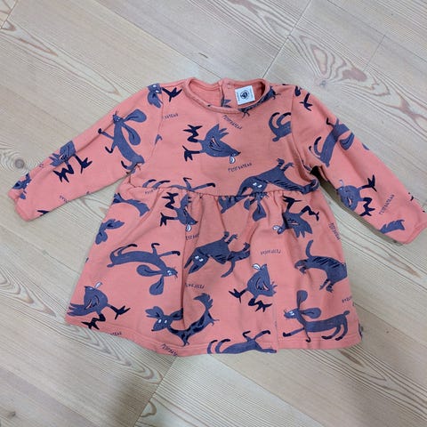 Suloinen Petit Bateau -mekko. Väri on tummanvihreä kukkakuosi. Takana on nepparit, joten mekko on helppo pukea ja riisua. Materiaali on 100 % puuvillaa. Sopii arkikäyttöön ja juhliin!