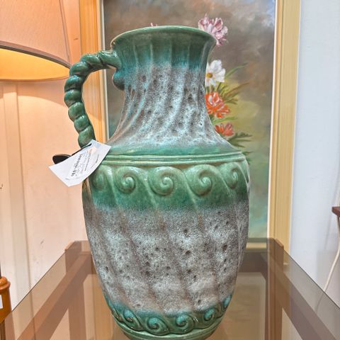 Saksalainen iäkäs maljakko, jossa kaunis kukka-aihe. Maljakon mitat: 10 x 18cm. (Nouto tai postituskulut lisätään hintaan).