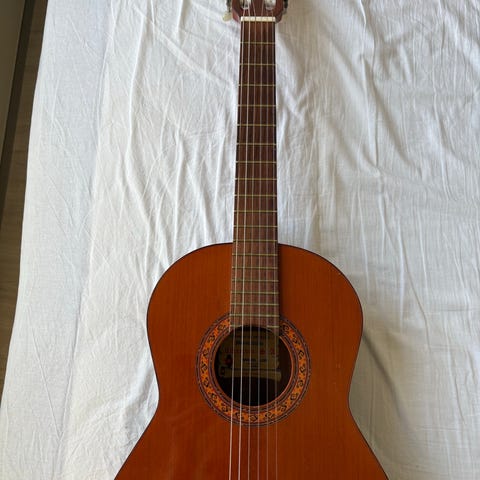 Käsityöllä tehty erinoimaisessa kunossa oleva kitara.