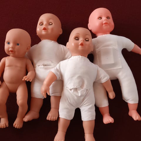 Ethän tingi kiitos. Kaksi nukkea, joista ainakin toinen tyttö. Nuken rattaat, kantolaukku.
