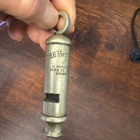 Klassinen tuomarinpilli. Englanti. Paino 40g. Pituus 5cm. Leveys 2,5cm. Katso myös muut tavarani saatat kiinnostua jostain ..