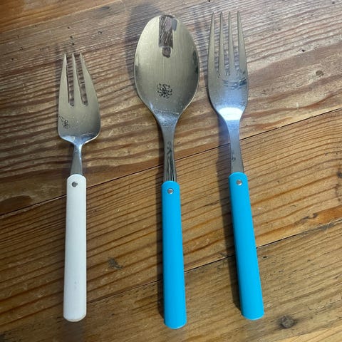 Kultakeskus Oy:n salaattihaarukka ja lusikka, vähän olleet käytössä.