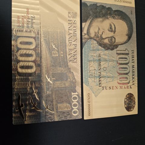 24 karaatin kullalla kuvioitu aihio 1000 markan setelin mukaisesti.