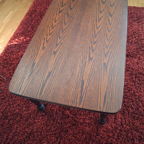 Kotimainen Anttiinan koivu lankku-sohvapöytä. Pähkinä/valkoinen.
