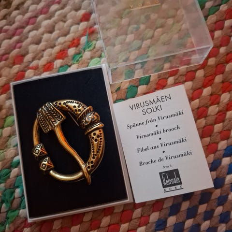 Muutaman kerran käytetty pronssinen solki alkuperäisessä rasiassa.